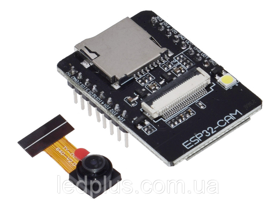 Плата розробки на базі бездротового модуля Wi-Fi ESP32-S з відеокамерою OV2640. Може використовуватися в системах відеоспостереження, розпізнавання жестів, QR-кодів. Живлення 5 В або 3.3 В.