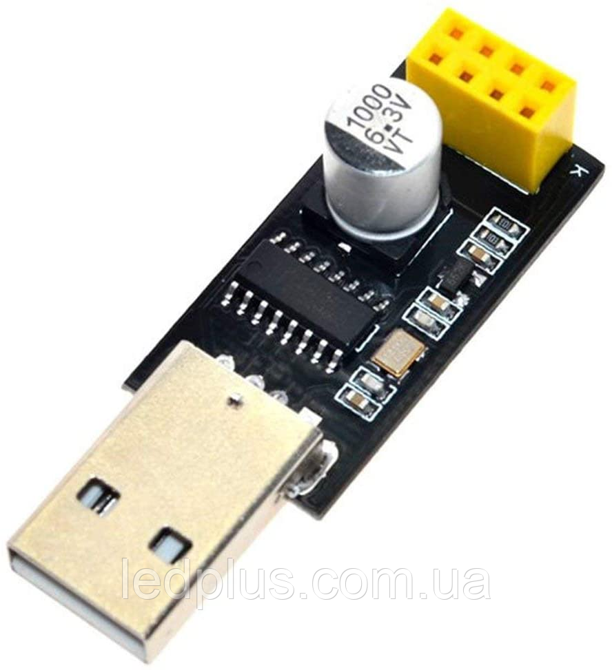 Модуль призначений для перетворення сигналів USB на сигнали UART ТТЛ рівня. Використовується для програмування та роботи з модулем ESP-01 (ESP8266). Побудований на основі мікросхеми CH340G.