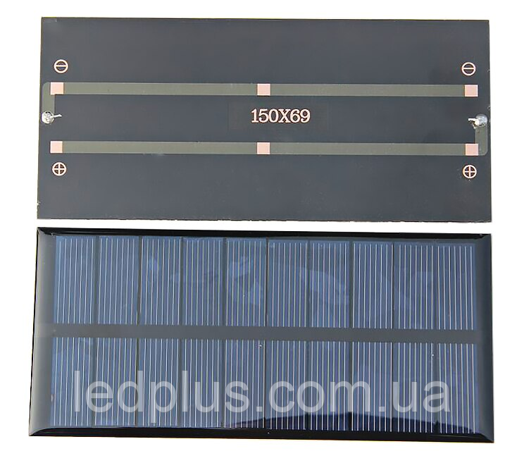 Сонячна батарея призначена для перетворення сонячної енергії на електричну. Застосовується для заряджання акумуляторів різних електронних пристроїв, в іграшках тощо. Розмір панелі 150 х 69 мм. Здатна виробляти електрику напругою до 5В і живити навантаження струмом до 300мА за яскравого сонячного випромінювання.